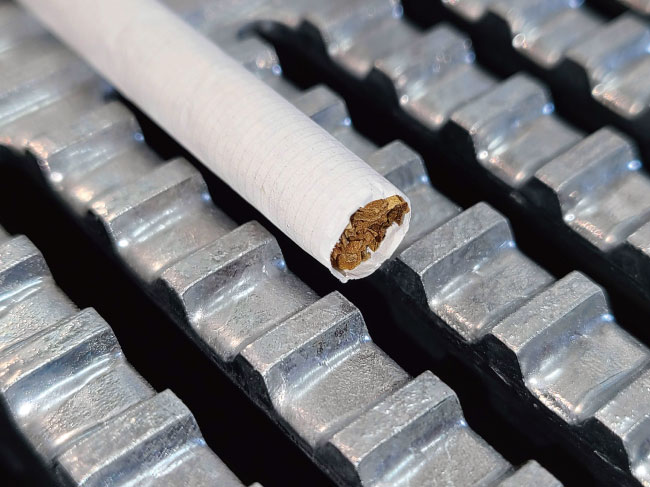 タバコがスキマへ⼊ってしまうため、孔内へ落ちてしまいます。