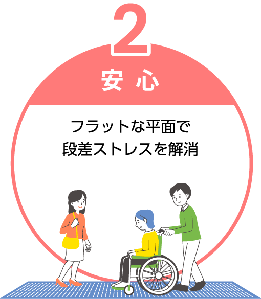 ショッピングカート・ベビーカー等の⼩径⾞輪の通⾏も隙間や段差部分が従来品に⽐べ少なくなることでスムーズになります。