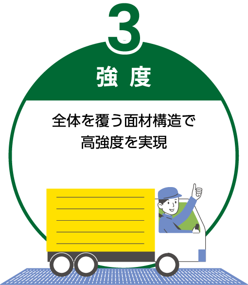 「⾯材構造」となり、フラットな平⾯でキャスター(⾞輪)の移動もスムーズになります。