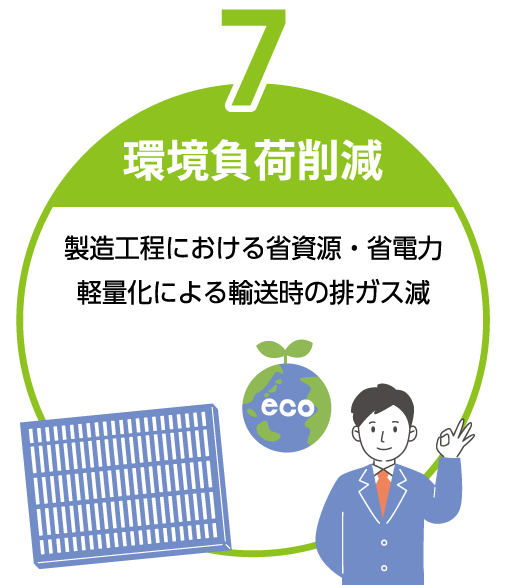優れた安全性、意匠性で都市景観への適合性を図った製品です。粗⽬グレーチング上部に